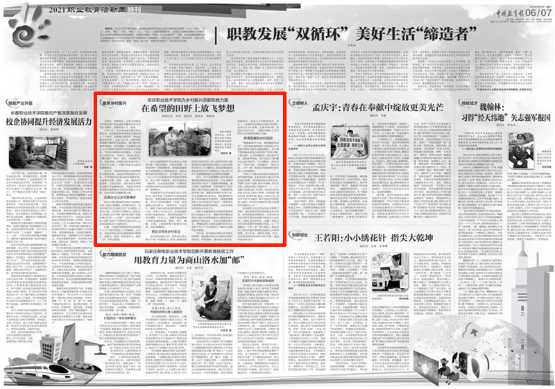 近年来,安庆职院不断出台专项支持政策,鼓励教师面向乡村振兴开展科技咨询、科技服务、规划设计等活动。而教师们一边走入乡村服务农民、农企,一边聚焦乡村振兴开展科学研究,发表论文100余篇,出版专著8部,获国家专利15项,一篇篇带着泥土芬芳的论文在希望的田野上写就。