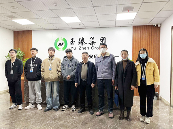 在玉臻集团,到访人员参观考察了企业办公环境,详细了解企业招聘的人才类型、人才需求和素质要求,并就学生实习、就业岗位、晋升空间、福利待遇、生活条件等进行深入交流,初步达成了学生实习和就业合作意向。