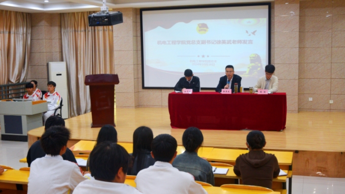 10月16号,机电工程学院在1号教学楼216教室举办2024年“青马工程”暨第十五期学生干部培训班开班仪式。该院党总支副书记参加仪式并作开班第一课报告,该院团总支书记、团总支副书记、专职辅导员代表及“青马工程”培训班全体学员参加仪式。