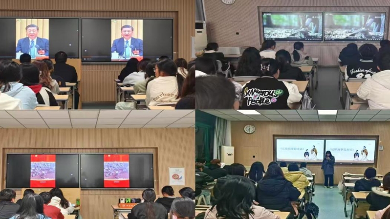 学习新思想,争做新青年!为帮助同学们更好地理解新思想,学做新青年,学院开展了“以青马之名,赴时代之约”为主题的研讨会,研讨会帮助学生们充分理解马克思主义理论相关内容,对相关时政热点进行解读。现代商务学院专职辅导员翁璇老师带领同学们学习“人民至上:政府大院‘随便进’蕴含的思政课知识”、“铸魂育人:习近平总书记致信祝贺中山大学建校100周年背后的思政课知识”等时政热点。