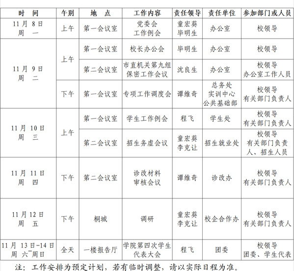 2021-2022学年第一学期第11周(11.8-11.14)工作安排