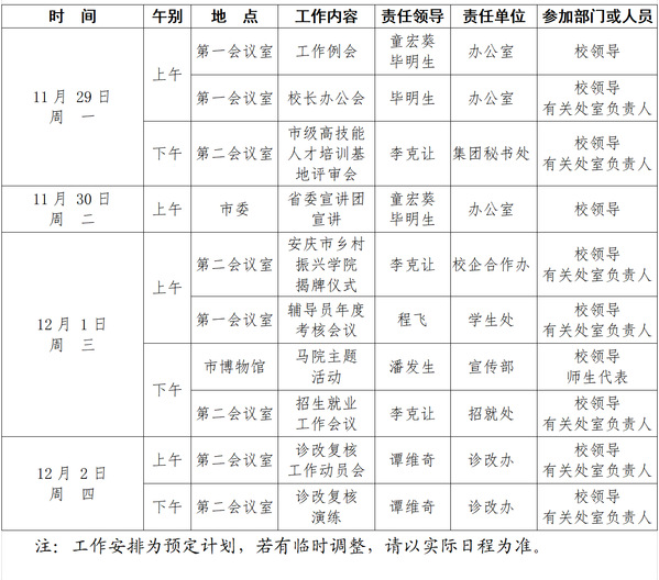 2021-2022学年第一学期第14周(11.29-12.5)工作安排