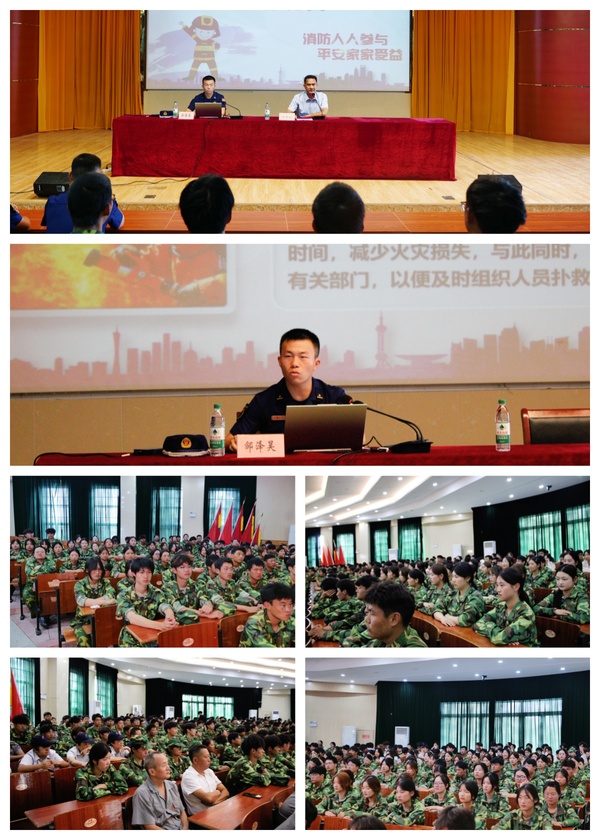 在图文信息中心大报告厅,消防救援站副站长邹泽昊进行消防安全知识培训讲座。他通过近年来的校园火灾警示案例引入,详细讲解了火灾预防的基本内容、火灾种类、灭火器及消防水带使用方法和用途相关知识,教会大家掌握救火常识及火场逃生术等。