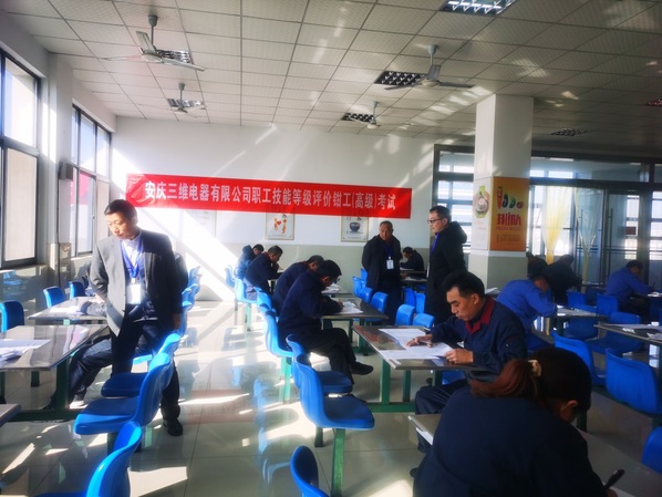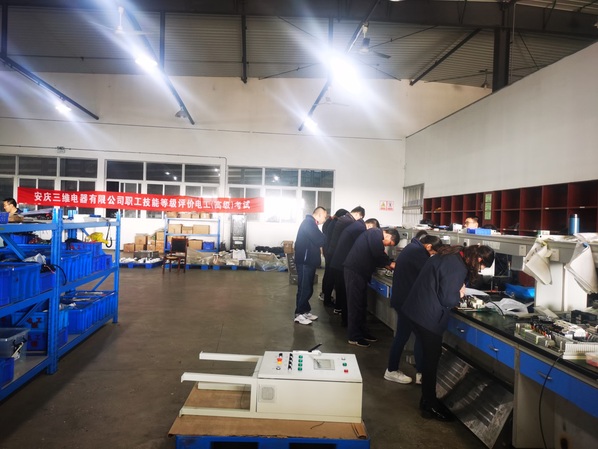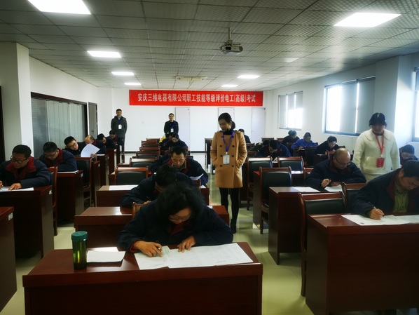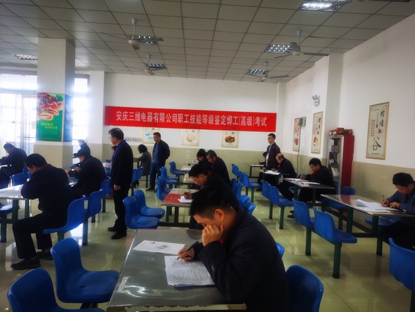 随后培训部主任姚咏陪同杜科长来安庆三维电器有限公司督查焊工和电工考试现场。