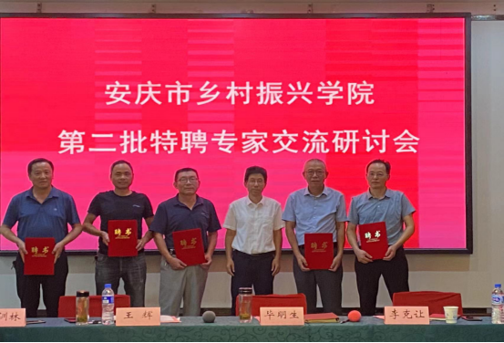 8月19日安庆市乡村振兴学院第二批特聘专家交流研讨会在黄梅山庄顺利举行。威尼斯官网党委副书记、校长毕明生、安庆市乡村振兴局副局长王辉出席并讲话,校党委副书记李克让主持研讨会,农林与服装学院、校企合作办、培训部负责同志及安庆市乡村振兴学院特聘专家共谋乡村振兴人才培养工作。