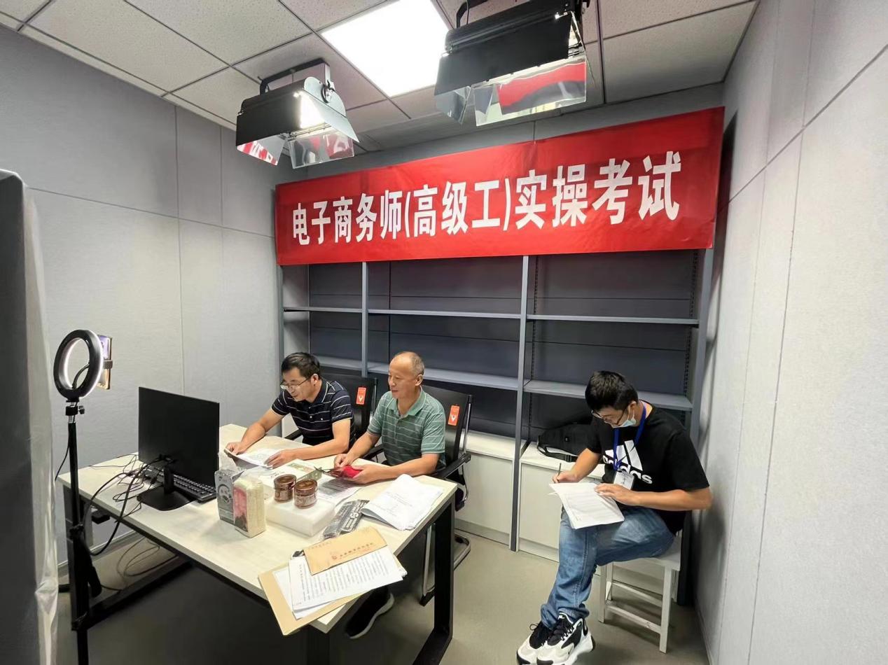 本次考试紧贴电子商务工作实际,分为理论和实操两部分,分时分段合理安排考试,围绕电子商务师理论基础进行笔试,再由学员根据现场准备的安庆特有农产品进行脚本设计,进行现场直播展示产品。丰富的考试形式,考察了参赛选手职业素养、电子商务业务综合能力和应变能力。