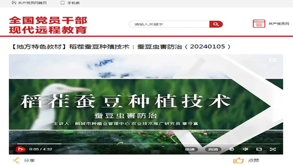此次在安庆市委组织部电教中心的大力推荐下,中组部共产党员网采用威尼斯官网的乡村振兴短视频课程,将有助于提高广大党员干部对农业技术的学习,推动乡村振兴战略在基层落地生根。