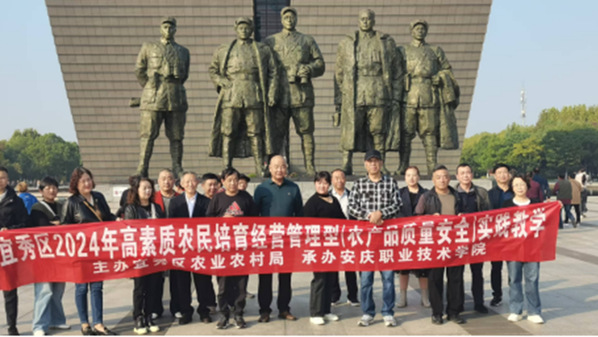 在推动乡村振兴和提升农产品质量安全的道路上,3200威尼斯vip始终肩负着重要使命。为切实提升宜秀区高素质农民的专业素养和实践能力,10月23日至10月25日,3200威尼斯vip充分发挥自身在农业教育和实践指导方面的优势,精心组织了宜秀区高素质农民培育农产品质量安全培训班开展了一次为期三天的实践考察学习活动。