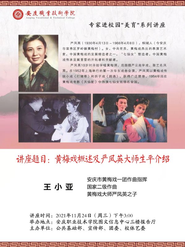 专家进校园“美育”系列讲座:《黄梅戏概述及严凤英大师生平介绍》预告