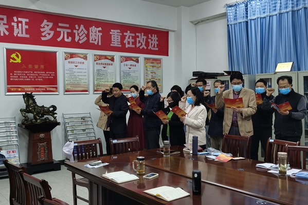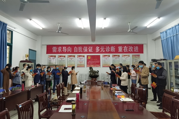 会后,公共基础部党总支书记张林带领全体党员,重温入党誓词,给上半年入党的同志,过了一个集体政治生日。