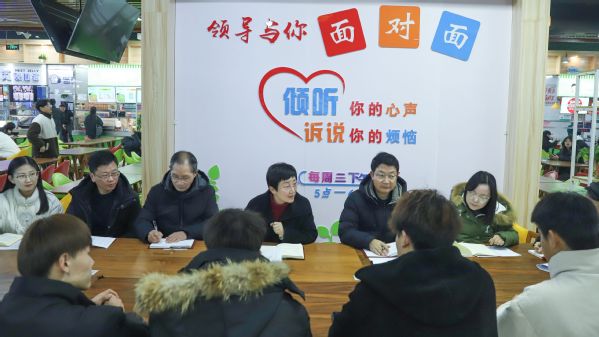 3月6日下午5:15,校党委委员、体委主任高润霞带领公共基础部、校团委、学生处等部门相关负责人和体育老师代表走进食堂一楼大厅,开始了新学期首场“领导与你面对面”交流活动。