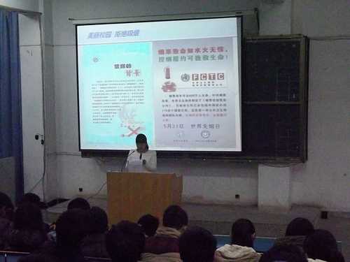 活动通过播放视频、图片等形式向同学们宣传吸烟的危害性、戒烟的重要性以及如何戒烟等知识。呼吁同学们远离香烟。在全院上下形成一股自觉抵制香烟的良好风气,倡导健康文明的生活方式,构建卫生和谐的校园。