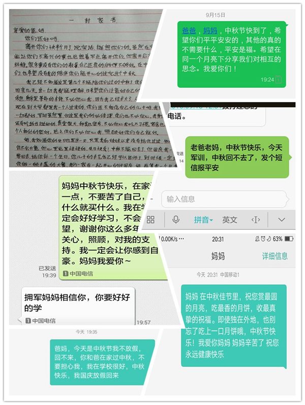 每逢佳节倍思亲,更何况是万家团圆的中秋节,这不免让在外的游子心中翻起思念的涟漪。对于今年2016级学生来说更加残酷,因为今年的中秋节是伴随着艰苦的军训。他们白天经受烈日的考验,身体疲惫不堪,晚上还要煎熬内心的愁绪,所以希望此次活动,鼓励新生采用家书,短信、电话等方式向家人汇报在校期间的各项收获,并表达对父母的感恩之情,也在中秋节为父母送上一份特殊的礼物。