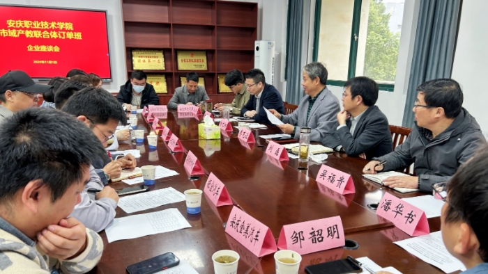 在热烈的讨论氛围中,安庆瑞迈特科技有限公司副总经理朱晓峰、安徽盈创石化检修安装有限责任公司程良冰等业界精英,就企业背景、发展战略、岗位要求及人才需求等方面展开了深入交流。他们纷纷表示,将积极构建校政企合作平台,全力助推订单班组建,为高校人才培养与企业产业发展提供全方位的服务与支撑。