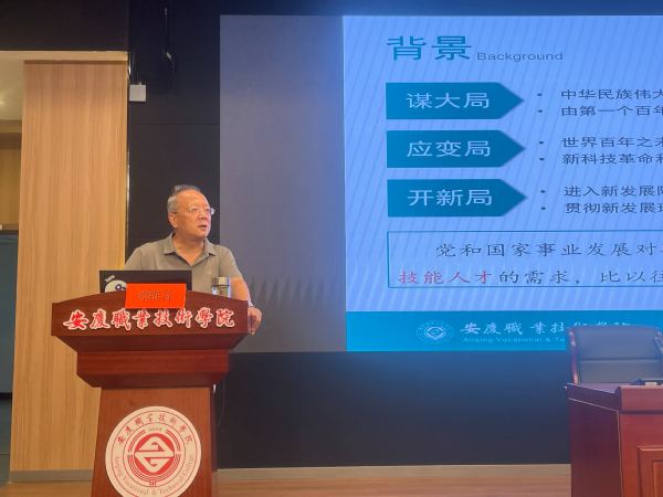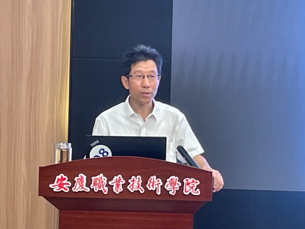 谭维奇带来《新时代职业教育的形势与类型特征》讲座。他从“新时代党的教育方针、职业教育的类型特征、安徽高职教育的发展、学校专业建设的现状”四个方面,深入阐释了新时代国内、省内高职教育的发展形势以及职业教育的类型特征。同时,谭维奇对新进教师寄予厚望,希望他们树立正确“三观”,努力成为“四有”好老师。