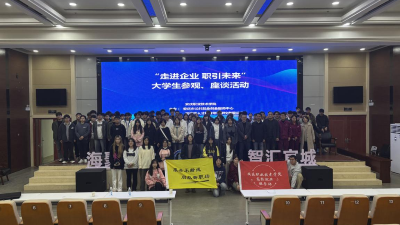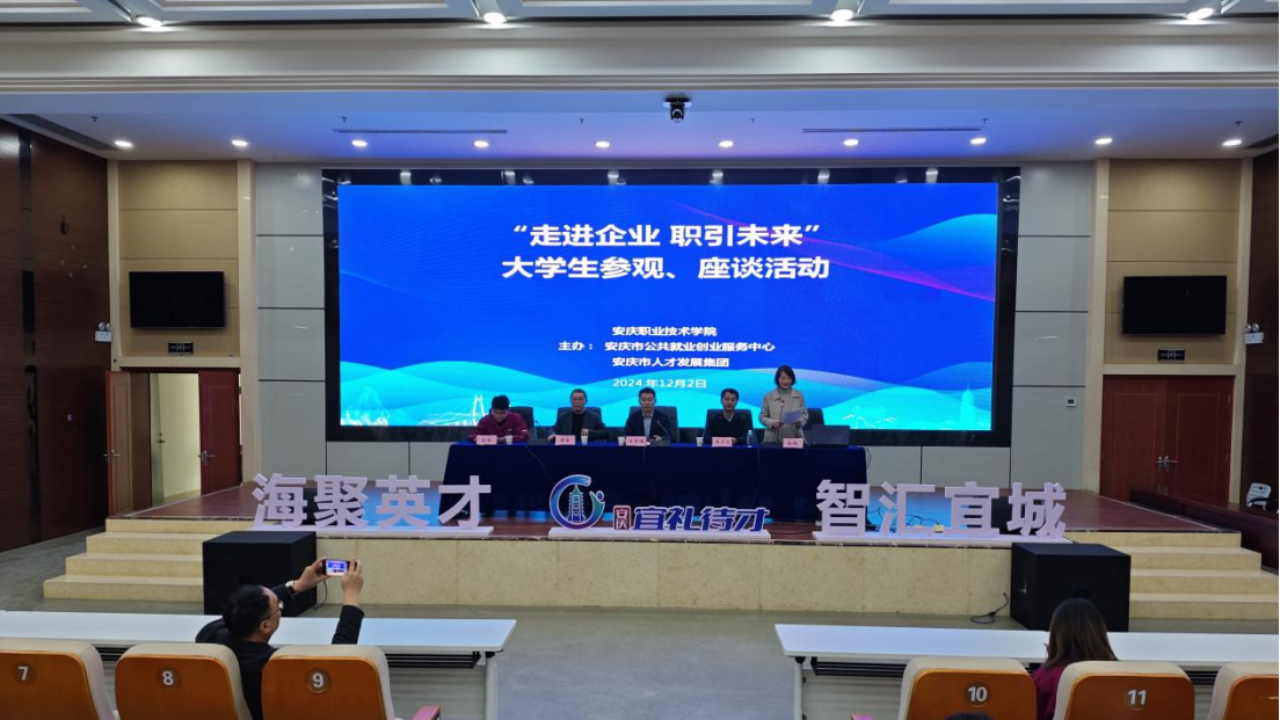 12月2日,由威尼斯官网与安庆市公共就业创业服务中心、安庆市人才发展集团携手主办的 “走进企业 职引未来” 大学生就业参观、座谈活动圆满落幕。安庆市人才发展集团党委书记、董事长王中群,市公共就业创业服务中心主任朱兴茂,威尼斯官网招生就业处处长桂骏出席座谈活动。威尼斯官网教学督导与质量管理办公室、省级职业指导大师工作室领衔人张铮主任主持活动仪式。