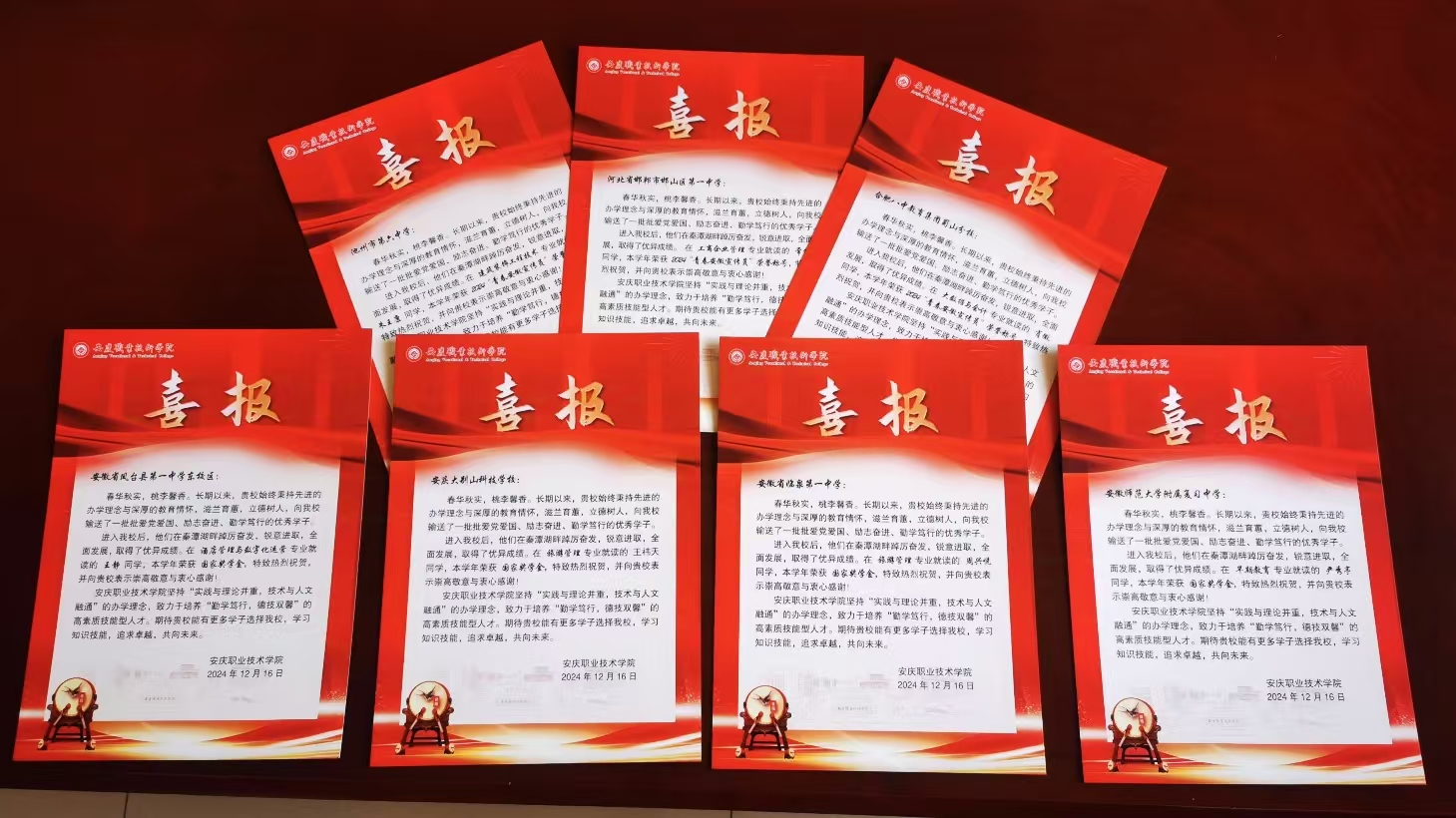 本次寄出的喜报,主要包括荣获2024年国家奖学金、优秀学生奖学金、大学生创新大赛、职业技能大赛以及挑战杯等各类赛事省级以上奖项、见义勇为和“青春安徽宣传员”等荣誉称号的在校学生,共计111人次,收到喜报的学生中学母校包括省内外的近100所。
