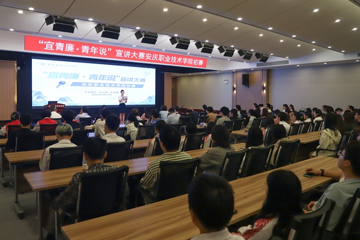本次大赛以习近平新时代中国特色社会主义思想为指导,以“青年·清廉——扣好廉洁从政'第一粒扣子'”为主题,紧密围绕学习党的二十大精神,以常规宣讲、文艺宣讲、情境式宣讲三种形式,讲述“廉洁、自律、青春、担当、奉献”的安庆职院青年故事。大赛自4月20日启动以来,经认真组织、广泛宣传,各二级学院在院内选拔的基础上,共推荐9位青年教师登上了学校初赛的舞台。