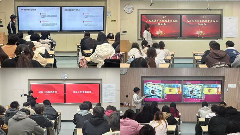 活动的初期,由现代商务学院2024级18个班级的思政委员在各个班级里为大家讲述中国人民志愿军英雄们的故事,同学们以坚定的话语表达了对英雄的敬仰,并立志在未来的学习和生活中践行英雄精神,努力为国家的繁荣富强贡献力量。24级工商企业管理1班朱彬杰同学说:“每当我想起抗美援朝战场上的英雄王德明,心中便涌起无尽的敬意与深深的感动,在那个战火纷飞的年代,王德明前辈以他的英勇和坚毅,成为了我们民族不屈不挠精神的象征。我将努力成为像王德明前辈那样的灯塔,照亮自己,也照亮他人,为实现中华民族的伟大复兴贡献自己的青春和热血。”24级大数据与会计5班刘家润同学说:“杨育才英雄的精神一直激励着我,让我明白当代青年生逢其时、重任在肩,唯有步履不停、不断奋进,才能无愧于先辈的奉献,才能不负这个伟大的时代。”