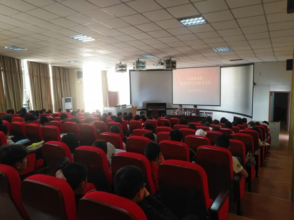 4月19日中午,社会事业系2018届优秀毕业生经验交流会在3号教学楼216教室举行。该系学生工作负责同志出席报告会,全体辅导员及部分学生代表参加了报告会。