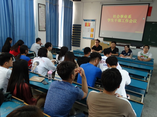 6月13日下午,社会事业系在214教室召开期末学生干部工作会议。会议由该系团总支书记主持,系学生工作负责同志出席会议,全体班主任及学生干部参加会议。