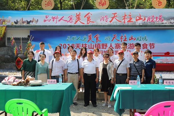 2018年9月15日潜山市2018天柱山镇野人寨旅游美食节开幕式在天柱福元乡村民宿休闲区盛大举行。潜山市领导、市直有关单位及天柱山镇领导、美食达人、农家乐代表、合作社代表、中央驻皖以及安徽主流媒体及相关景区代表等参加。我院作为校企合作单位代表受邀参加,副院长谭维奇在社会事业系及校企合作办有关负责同志陪同下出席开幕式。社会事业系文化旅游专业群部分教师及学生代表也观摩了开幕式盛况。