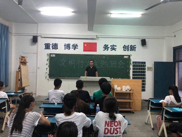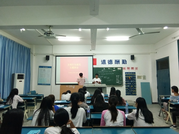 各班班会从什么是文明讲起,联系生活实际,讲述校园文明与学生文明的重要性。辅导员们首先向新生同学们阐述了对于当代大学生来说,文明修身和专业学习同等重要,专业学习主要培养大学生的科学精神,而文明修身主要培养大学生的人文精神,二者缺一不可。通过讲述身边同学的故事,指出校园里存在的不文明、不和谐现象,要求同学们对自身言行举止进行约束,共同携手,提高自身文明行为,提升大家的思想道德和人文素质。随后,由同学们就“文明行为”发表了自己的看法,大家由主题联想到自己身边的一些不文明的行为,并就这些不文明行为发表了自己观点,同时,同学们就如何提高自身道德素养、如何更好地做到文明修身提出了自己的建议和意见。经过同学们的积极发言和认真讨论,大家认为只有文明的个人才会有文明的班级团体,才会有文明的校园,才会有和谐的社会。