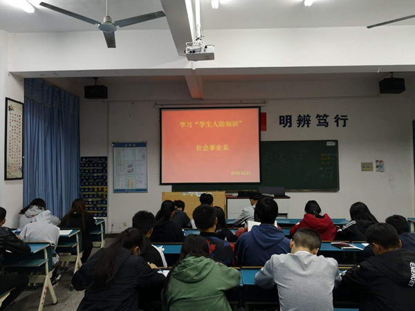 2018年10月21日晚,社会事业系组织全体同学在晚自习时间集体学习人防知识。同学们通过学习增强了国防观念、提高了防护技能、促进了学生德、智、体、美、劳全面发展。(图:仇启明 审核:石望东)