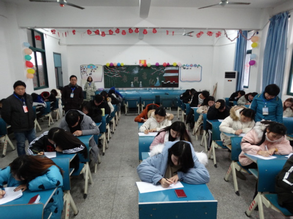 开考首日虽然寒意阵阵,系领导深入各考场,检查巡视考试情况;所有监考老师全部佩证上岗,并提前10分钟到达考场,清理考场,查验证件;绝大部分学生也严格按照规定时间入场,按指定位置就坐。考试期间,学生手机一律上交入袋。同学们在考试过程中也表现出良好的诚信意识,自觉遵守考试纪律,认真思考,专心答题,考场秩序井然。