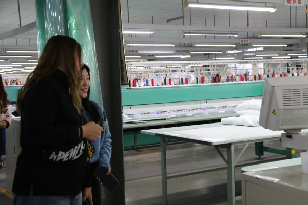 本次参观活动受到公司领导的热情接待。公司不仅安排两部大巴车接送,还专门安排工作人员带领同学们参观了公司印花车间、绣花车间、一工厂、五车间、七车间、创新中心、职工活动中心和职工宿舍。工作人员一边引导同学们参观,一边向大家详细介绍了产品生产加工工艺和流程、企业的创新研发情况、员工的文化娱乐生活和住宿条件。