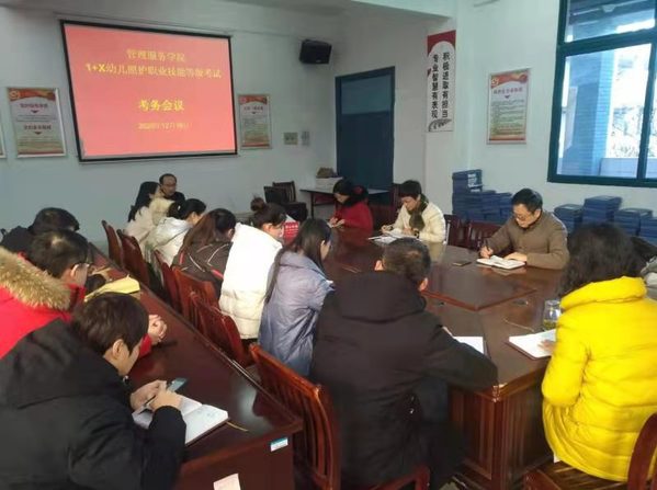 为保证此次考评工作顺利进行,12月16日下午,管理服务学院精心组织了1+X幼儿照护职业技能等级证书考务工作会议。院长高润霞对参加此次考试工作的全体人员提出了具体要求。学院教学工作负责同志对考试的各项具体工作进行了布置。实验实训中心有关负责人出席会议并讲话。晚上幼儿发展与健康管理专业负责人对首批参加考试的考生召开了考前专题动员会。