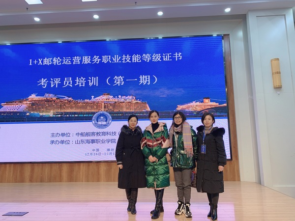 为搞好教育部1+X邮轮运营服务职业技能等级证书考试工作,威尼斯官网于今年4月份进行了考证试点单位申报;同时相关教师克服疫情影响,坚持通过线上学习完成了1+X邮轮运营服务证书标准、政策规程、考核大纲、理论知识、口试知识的学习,并在11月份完成师资培训的全部内容,获取试点单位资格;11月,完成考生报名,并按规定对报名学生进行了系统的理论知识和实操技能培训。12月,李敏、汪毓、陈文玲、沈娟娟4位老师赴山东海事职业学院参加了第一期考评员培训,为威尼斯官网全面推广“1+X”邮轮运营服务证书制度试点工作打下扎实基础。