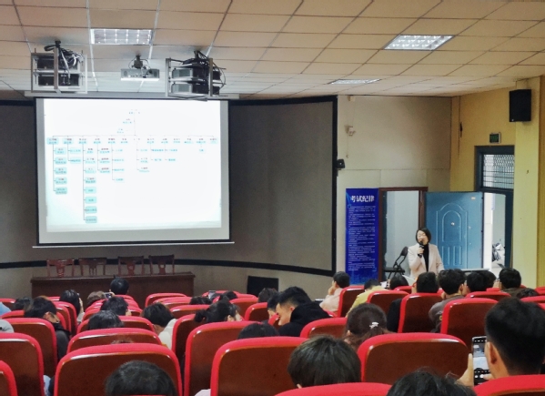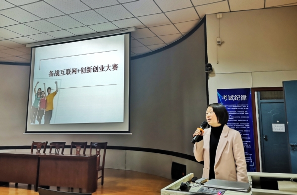会议的主体是张铮副教授所做的《备战互联网+创新创业大赛》专题报告。报告从团队组建、项目选择、计划书撰写等方面全面剖析了创新创业大赛,并重点针对如何结合所学专业找准创新创业切入点以及“双创”计划书的格式规范进行了深入讲解。