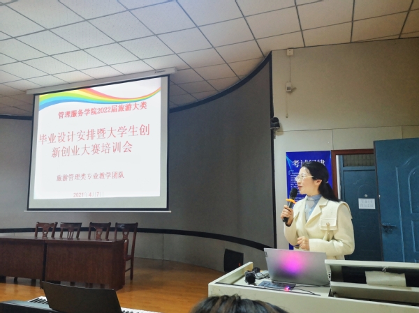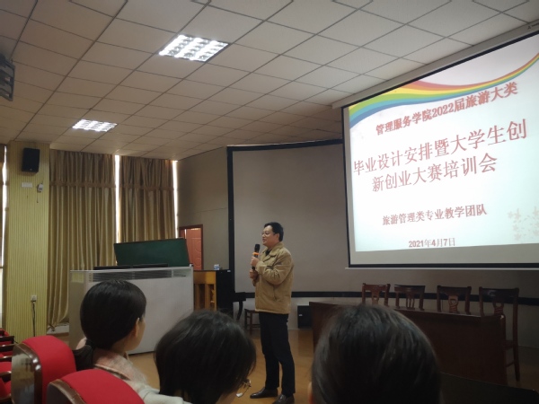 4月7日下午,我院在3号教学楼216教室举行管理服务学院2022届旅游类专业群毕业设计安排暨大学生创新创业大赛培训会。大会特邀教务处副处长张铮副教授作创新创业大赛培训。管理服务学院副院长杨厚松出席会议,旅游类专业群专业教学团队骨干教师以及2019级酒店管理、旅游管理、国际邮轮乘务管理专业全体同学参加了培训会。培训会由院长助理、专业负责人李敏主持。