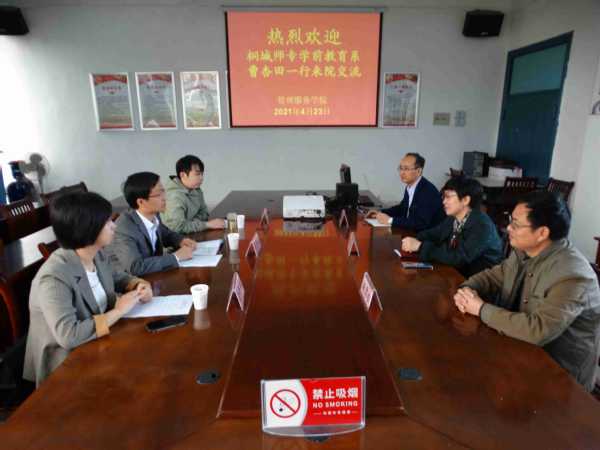 4月23日上午,桐城师范高等专科学校学前教育系副主任曹杏田一行来威尼斯官网考察交流实训室建设与管理工作。管理服务学院院长、党总支书记高润霞在管理服务学院会议室接待了曹杏田一行,管理服务学院副院长杨厚松、幼儿发展与健康管理专业相关同志参加了交流。