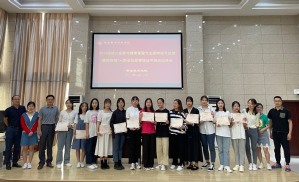 幼儿发展与健康管理专业建设负责人代表实习指导小组从领导重视、组织得力、实习单位支持、学生努力等方面对本次跟岗实习工作做总结,肯定了全体实习生在实习中的出色表现及成功经验。随后教学管理科科长宣读了优秀跟岗实习生名单,学院领导向69名优秀实习生颁发了荣誉证书。