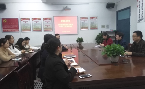 会上,教学工作负责人与学生工作负责人分别就2022届毕业生期末考试、1+x证书培训、毕业设计、招聘会安排、离校材料等事项做了具体安排。