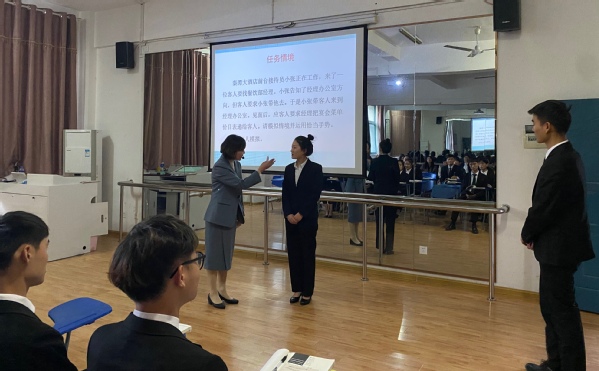 吴紫英、华林蔓、朱菲菲三位老师分别代表酒店管理与数字化运营专业团队、旅游管理专业团队和婴幼儿托育服务与管理专业团队参加比赛。吴紫英老师参赛的课题是《酒店服务礼仪》课程中的《手势礼仪》,华林蔓老师参赛的课题是《全国导游基础知识》课程中的《刺绣》,朱菲菲老师参赛的课题是《亲子课程设计》课程中的《幼儿动作发展主题活动设计指导》。三位老师在传统课堂教学基础上融入课程思政元素,运用现代教法进行课堂教学,给观摩老师留下了深刻印象。