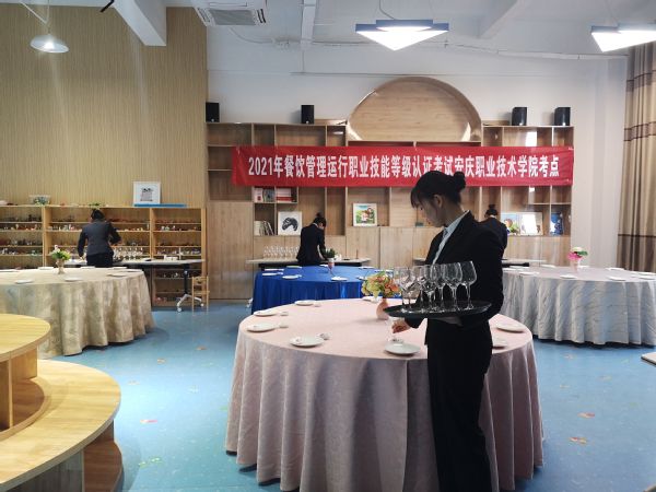 12月18日上午8点,61名考生准时到达图文信息中心5楼机房,经过体温检测、防作弊扫描、签到等规范程序进入理论项目考场。上午10点,在考务人员的组织下考生有序进入1号实训楼实操考场。上午10点30分,英语口试正式开始。下午12点30分开始又依次进行了智能化和餐厅服务两项技能考试,尽管过程漫长,却始终井然有序。下午18点,考试圆满结束。