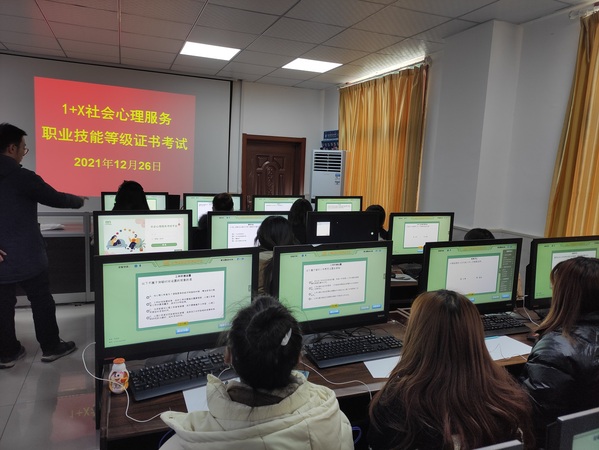 “1+X”社会心理服务职业技能等级证书考试采取人机语音交互模式进行。为搞好此次考试,学校高度重视,从师资培训到各种资源协调均给予了大力支持:7月份,委派4名婴幼儿托育服务与管理专业教师参加1+X社会心理服务职业技能等级证书师资培训,并顺利获得培训师资格;10月份组织2019级、2020级幼儿发展与健康管理专业学生报名;11-12月份开展了学生考证培训工作,最终确保考试圆满完成。