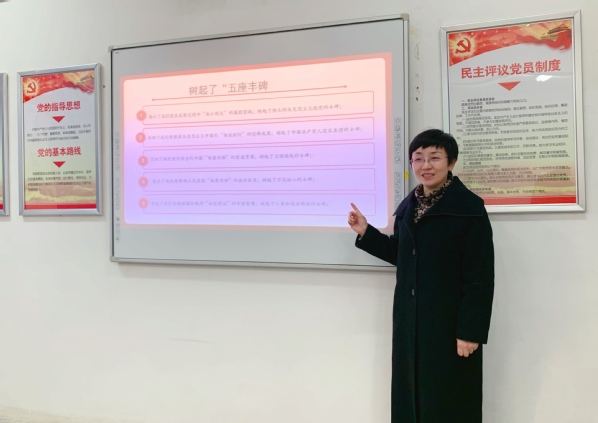 1月11日下午,管理服务学院党总支书记、院长高润霞在3#314会议室为全体教师党员上了一堂题为《十九届六中全会的重要成果——从党的百年奋斗重大成就和历史经验中汲取力量》的党课。