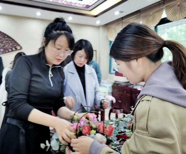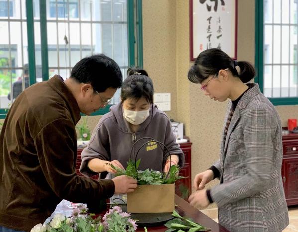 活动结束后,团队老师们将插花作品送给学校门房保卫、公寓宿管、医务室等坚守在抗“疫”一线的工作者们,感谢他们为全校师生的健康生活做出的付出和贡献。