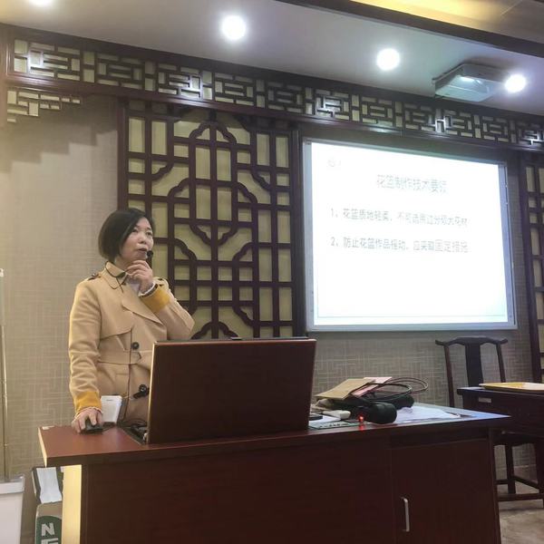 在实训室里,汪毓老师为两个团队的老师们展示了一堂生动的插花艺术公开课。汪老师为大家讲解了花艺的基本知识,分析了东方插花与西方插花的区别,并向大家展示了自己的花艺作品。最后一个环节,汪老师带领团队老师们分组体验了花艺作品的设计与制作,老师们认真的向汪老师请教插花的基本流程,讨论插花的技巧,现场气氛热闹有趣,经过老师们的努力,每个小组都做出了满意的花艺作品。