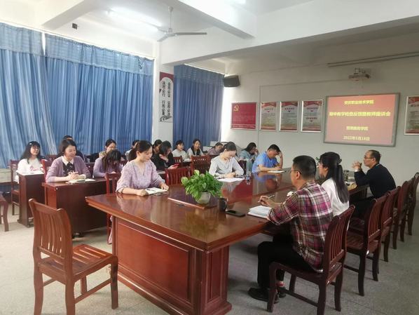 5月18日下午,管理服务学院在3号教学楼314会议室召开期中教学检查反馈暨教师座谈会。会议由院长助理李敏主持,管理服务学院全体教职工参会。