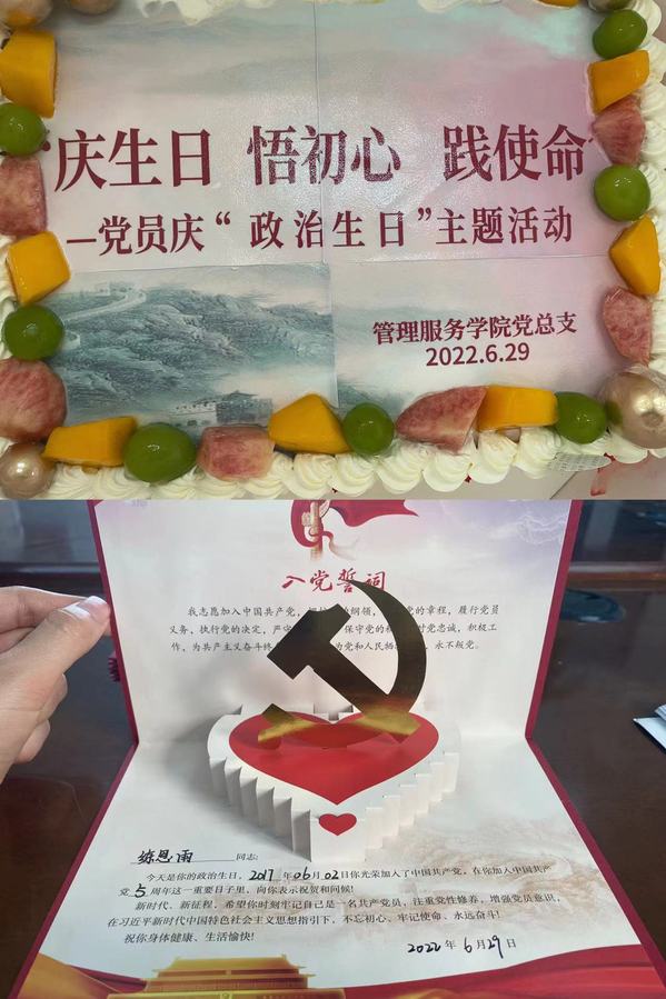 为进一步激发党员的政治热情,增强党员的责任感和使命感,让党员同志感受到组织的温暖,6月29日下午,总支开展了党员庆“政治生日”主题活动,为6月份过生日的5位党员举行了集体“庆生”活动。