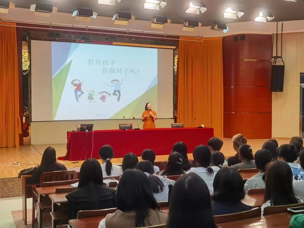 北京知名育儿专家、安庆市外国语学校韦伦国际幼儿园园长马秀从婴幼儿的心理、生理特点、婴幼儿行为特征等方面为婴幼儿托育服务与管理专业新生介绍了该专业的职业面向及特点,并从婴幼儿托育机构管理人才素质培养和职业发展等方面为新生描绘了一幅清晰的职业蓝图。整场讲座内容充实,互动连连,会场掌声不断。