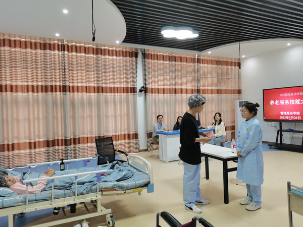 9月28日上午在一号实训楼成功举办了养老服务技能大赛。养老护理人才是养老服务的主要提供者,是养老服务体系的重要支撑保障。养老服务技能大赛以老年人需求为核心,以考核操作技能为重点,突出人文关怀,将专业照护服务有机融入居家社区和机构不同场景。赛场上,同学们模拟真实场景,用熟练的护理技能以及和蔼可亲的语言投入到模拟情境中,让评委老师们仿佛都有身临其境之感。