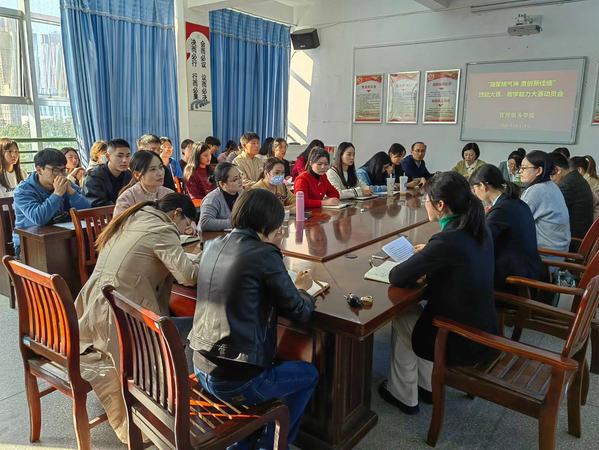 动员会上,陈颖强调,教师的知识、能力、素养既是教学质量的保证,也是学校立校之本。针对教师教学能力大赛,她要求:一要提高站位、高度重视。教学能力大赛是学校提质培优的重要任务,是推动学校内涵式发展、高质量发展的重要举措;是促进老师业务水平提升、打造高水平结构化教学团队、引领青年教师快速成长的有效途径;旨在推动国家教学标准落地,深化“三教”改革,探索推进“岗课赛证”融通育人模式、推动信息技术与教育教学深度融合,创新开展项目化、情景式、模块化教学,全面提升教师队伍整体素质。二要统筹兼顾、精心组织。学院、教学团队、参赛教师等针对团队组建、内容选择、分工协作、时间安排等具体事宜要充分商讨座谈,集思广益、精心组织、细致谋划、责任明确,拿出切实可行的备赛方案。三要明确目标、落实落细。提高自我要求,对标国赛、对标优质校,既要认真研读大赛文件,也要关注行业动态,还要深挖课程思政元素,集聚各方力量努力作为。四要总结过去、守正创新。参赛选手要认真查找自身不足,找准问题所在,积极在教学改革中创新思路和理念。