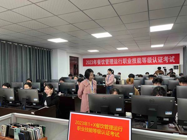 11月4日-5日管理服务学院1+X餐饮管理运行职业技能等级证书考试在图文信息楼机房和3号楼201、202餐饮实训室举行,2022级酒店管理与数字化运营专业86位同学以及16位社会考生参加了考试。