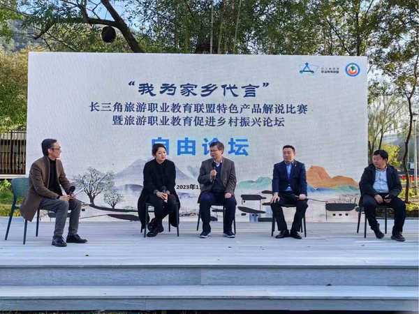 活动现场,举行了长三角旅游职业教育联盟新成员单位签约授牌仪式,及“我为家乡代言”特色产品解说现场展示。在“旅游职业教育促进乡村振兴”论坛中,来自南京旅游职业学院、上海旅游高等专科学校、浙江旅游职业学院、黄山学院的四位教授首先进行了专家主旨发言;黄山市黄山区乌石镇二十大代表龙守菊、黄山市黄山区焦村镇汤家庄村书记焦贵宝、上海旅游高等专科学校副校长卓德保、从筑·西舍民宿酒店总经理郭山秋韵、黄山徽商故里文化发展集团有限公司总经理金荣华、黄山市黄山区旅游宣传中心主任俞娟等作为特邀嘉宾参加了自由论坛。